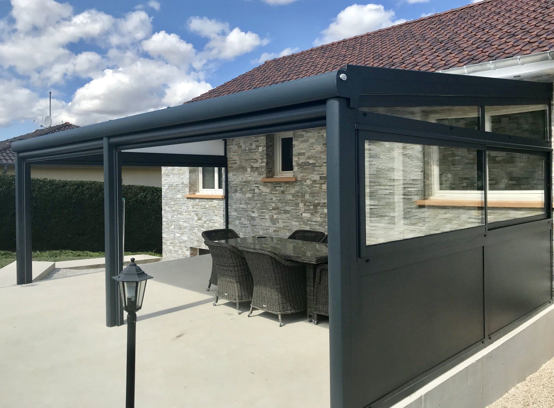 Ajouter des fermetures latérales permet de profiter plus longuement de sa pergola et de vous abriter du vent, des averses ou encore des insectes.